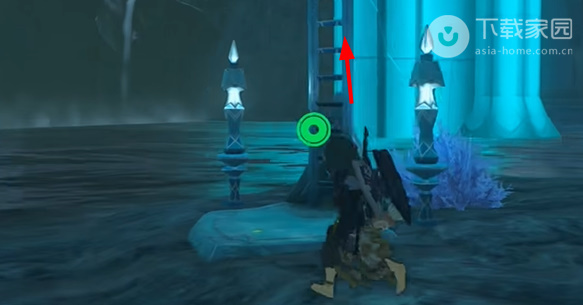 5、到达之后从下图箭头位置爬上去;