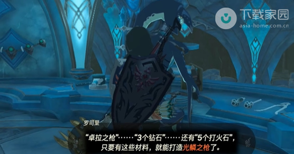 6、到达之后找到罗司里并与之对话,它会告知玩家想要打造光鳞之枪需要一把卓拉之枪、3个钻石和、5个打火石;