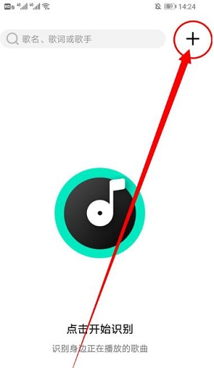 第一步:打开q音探歌软件,在界面右上方找到【+】,点击一下。