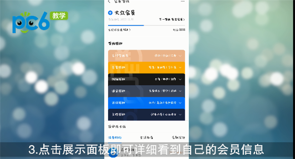 3.点击展示面板即可详细看到自己的会员信息;