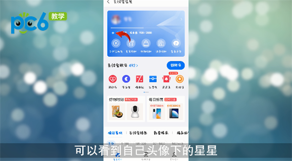 2.点击支付宝会员,可以看到自己头像下的星星;