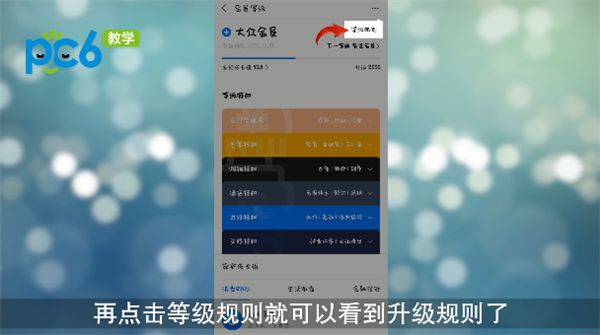 4.点击右上角三点再点击等级规则就可以看到升级规则了;