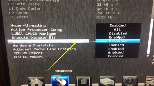 第二步,在菜单中找到VT选项并开启,不同型号的主板,BIOS界面不相同,VT的叫法也不相同