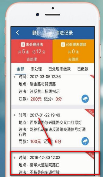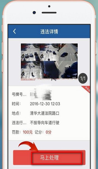 2.提示有未处理违章,勾选需要处理的违章,点击【马上处理】