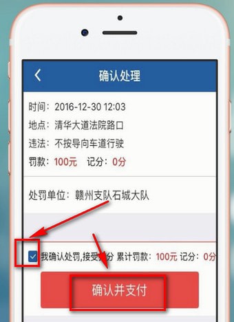 3.勾选【我确认处罚】,点击【确认并支付】