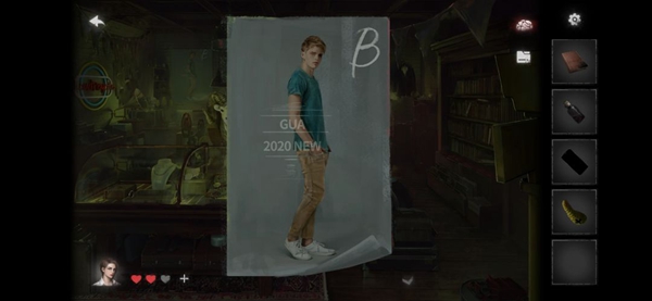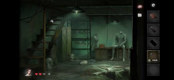 8、前往衣服店,使用羊角锤打开地下室的门,内部有衣架,可获得红色相册。