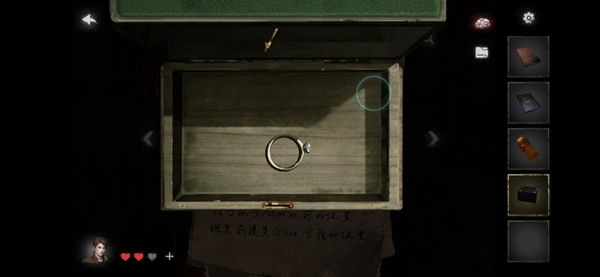 13、在架子上获得线索3,根据线索3可推算出绿色箱子的密码为OAES。按照左上到右下的顺序打开箱子,获得钻石戒指。