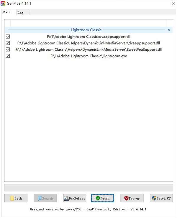 6、勾选需要激活的Adobe Lightroom Classic软件,点击Patch。