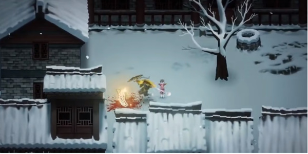 1、首先玩家们需要先解锁猪之章,然后去豕州城巷道内,我们可以看见对面有两个小孩,我们选择从屋顶走过去。