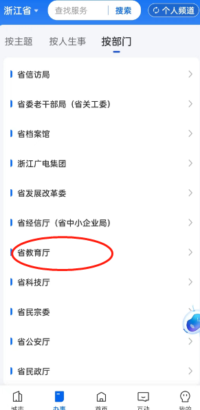 3、能在下图所示的栏目里看到很多部门,这里点击【省教育厅】进入