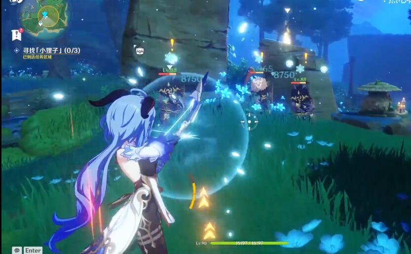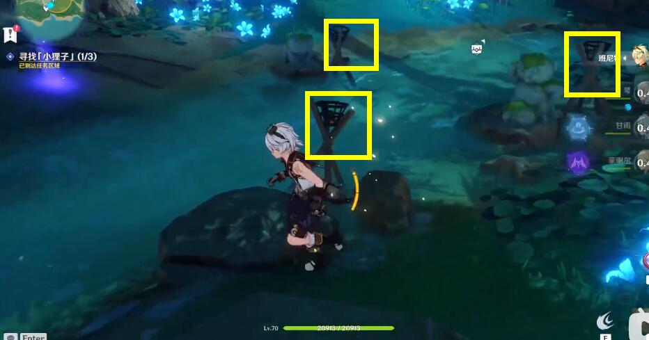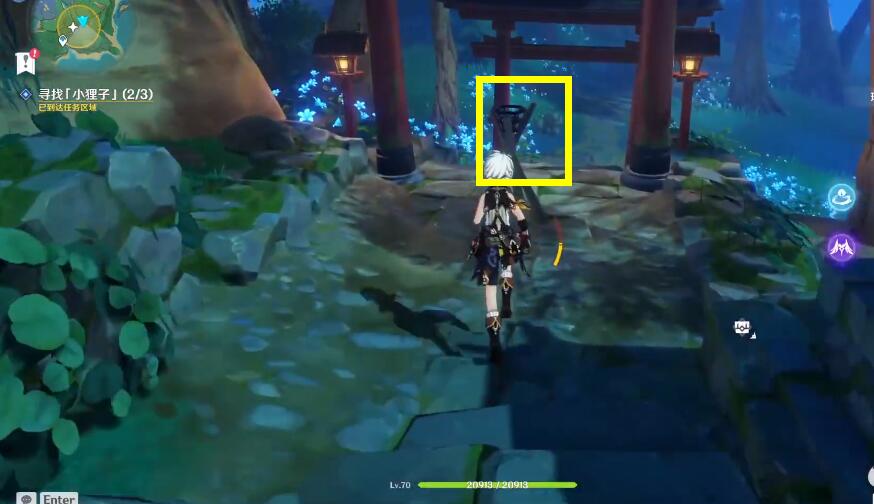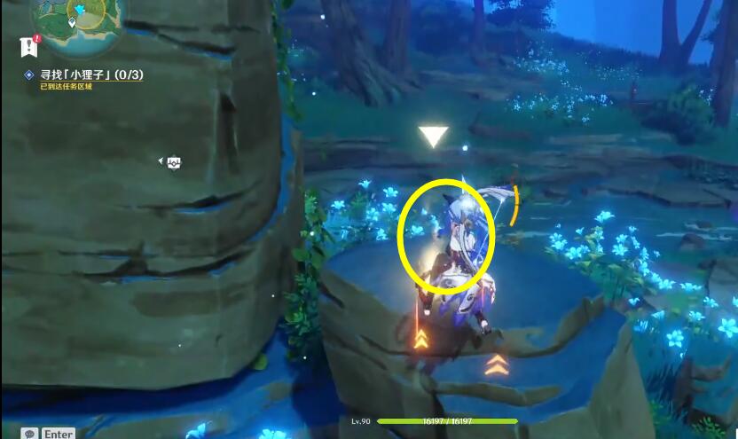 1、第一个小狸子在一群丘丘人附近,击杀丘丘人即可;