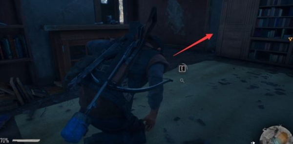 4、在车库的地面上我们也可以发现一些可疑的痕迹,我们可以通过书架的缝隙穿过房间。