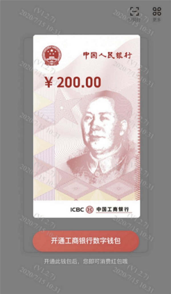 3、进入APP时首先会收到领取红包提示,点去“立即领取”后,开通红包发放银行数字钱包。