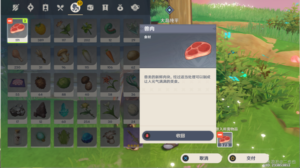 4、如果你没有兽肉的话,建议去璃月碧水原那里获取。
