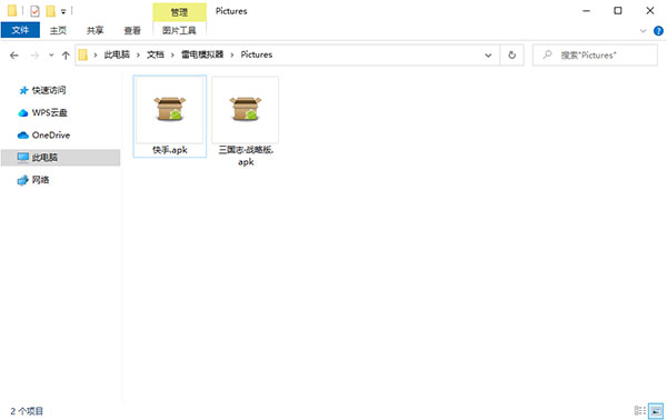 2、导出完成后,默认的导出文件夹为:C:UsersadministratorDocuments雷电模拟器Pictures。打开此文件夹即可查看导出后的apk文件了。