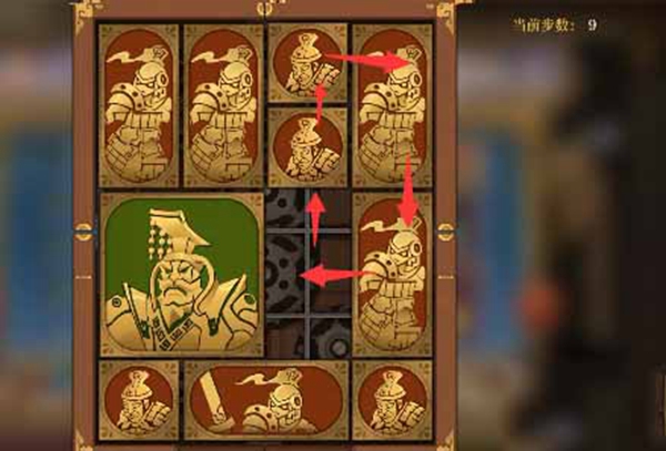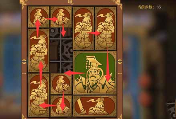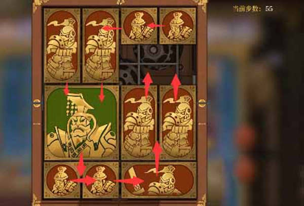 9、最后我们把水平方块向上移动一格之后,下方的小方块靠右边即可让将军走出去。