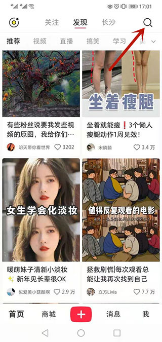 1、打开小红书APP,点击右上角放大镜图标。
