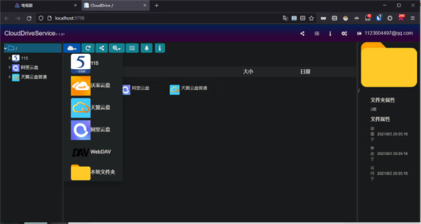 3、登录后左上角添加想要利用的云盘(有115 沃云盘 天翼云盘 还有阿里云盘 WebDAV)