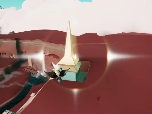 第二个小金人藏得很深。 必须先飞到宫殿最高点的塔尖,然后再绕到塔尖的后面才能看到。
