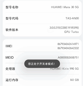 2、不断点击软件版本,下方会提示你已处于开发者模式