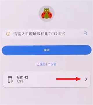 3、在主控机的甲壳虫 ADB 助手上,填写被控机的 IP 地址:端口号,点击连接