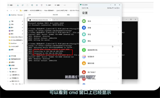 2、在 WIFI 无线连接 后,cmd 窗口会显示出手机的 IP和端口号