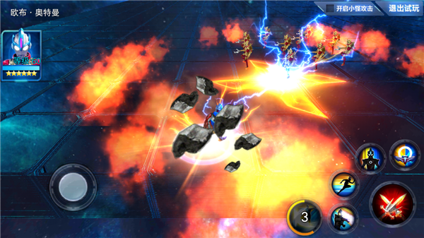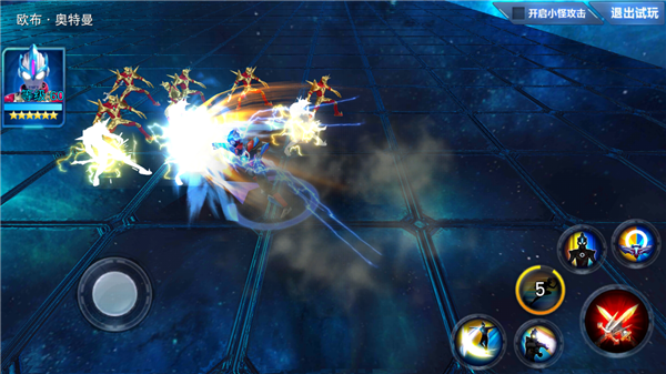 欧布以煌闪形态如雷电般向前突进,对敌人造成大量伤害的同时将会造成眩晕效果