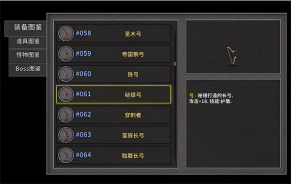 又到了喜闻乐见的推荐武器部分,首先我们要推荐的是新手的好朋友——秘银系列武器,对于没有逃生手段的弓箭来说,秘银弓自带的护盾技能是能够有效保障我们的生存能力的手段。前期如果得到这把武器的话可以用很久,不要错过噢。