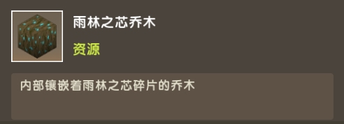之后来介绍一种较为特殊的乔木方块,雨林之芯乔木。