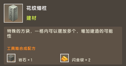 接下来将要登场的是非常特殊的方块,他叫做花纹细柱,经常出现在神庙当中:
