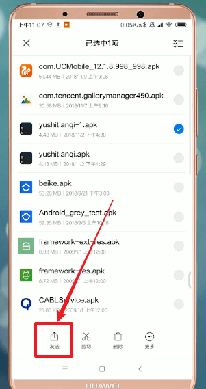 长按要分享的安装包,点击【发送】;
