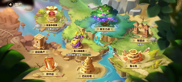 冒险里面全是游戏里面独特玩法有英雄对战、攻城战设计的活动赛每隔一段时间开放,其中能获取活动珍稀道具和资源,主要考验个人实力和团队赛。