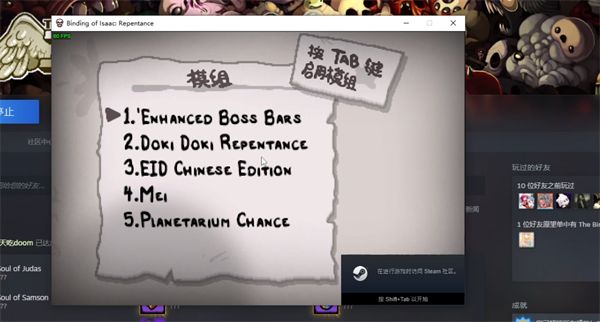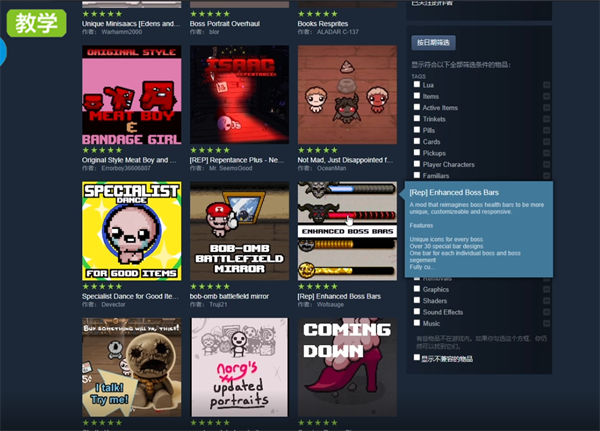 3.以以撒的结合和暗黑地牢为例,这些游戏的mod要在游戏内部再次勾选使用,在以撒的结合中点击模组并勾选下载的模组即可使用该mod,不过有些mod需要重启才能看见使用。在暗黑地牢中可以点击存档旁边的模组选项,在模组中可以勾选使用对应的mod,虽然每个游戏的mod勾选地点不同,但是创意工坊的mod一般都是在存档选项处勾选使用。
