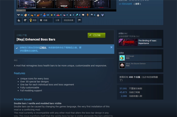 2.在创意工坊中点击自己需要下载的mod,在mod中点击订阅便可下载相对应的mod文件,不过对于大部分游戏来说,mod文件还需要在具体的游戏内容开启。