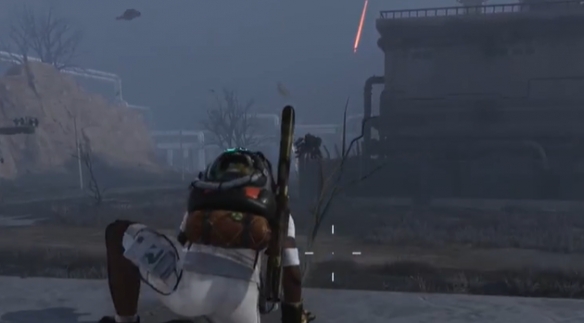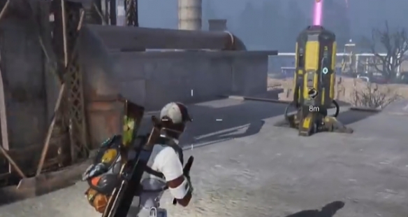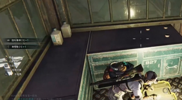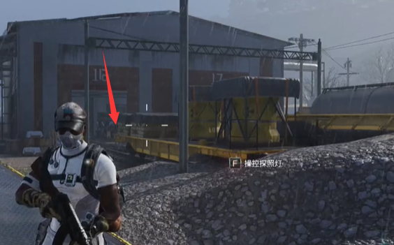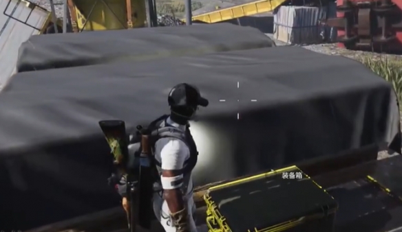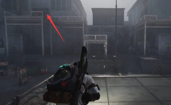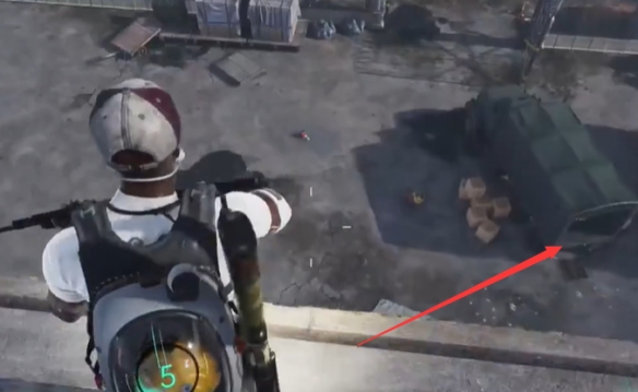 9、随后玩家从屋顶向东南方向飞,前往箭头所指的货车,到达后可以找到最后一个装备箱