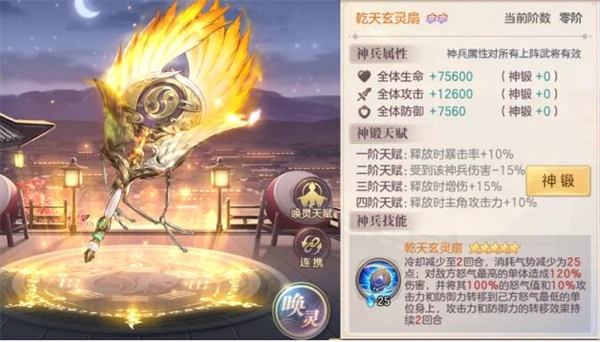 乾天玄灵扇:单伤偷怒,适合所有阵容,优先级最高的平民神器。