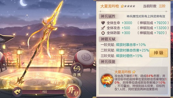 我们还需要对神兵进行强化和升级,从而使我们在战斗中更加强大,强化和升级能够大大提升神兵的属性和基础属性。