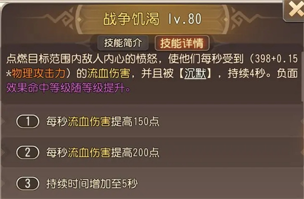 二技能——战争饥渴,小范围沉默,对于前期坦克联盟版本有着不错的克制效果。流血伤害不送能量,还算可观。斧王的软控技能,前期作用大些技能升级顺位的第三位。