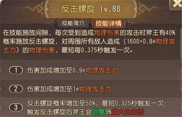 三技能——反击螺旋,斧王最主要的输出技能,极高的触发频率,就算是打法师队,也能够转上几圈。之前的更新增加了一个回血效果,非常关键的加强,解决了斧王之前打物理队也疲软的问题,打魂守此类带分身的物理英雄,轻松恢复大量血量不在话下。高频触发的被动技能,输出+恢复为一体,物理队噩梦小技能,技能升级顺位在第一位。