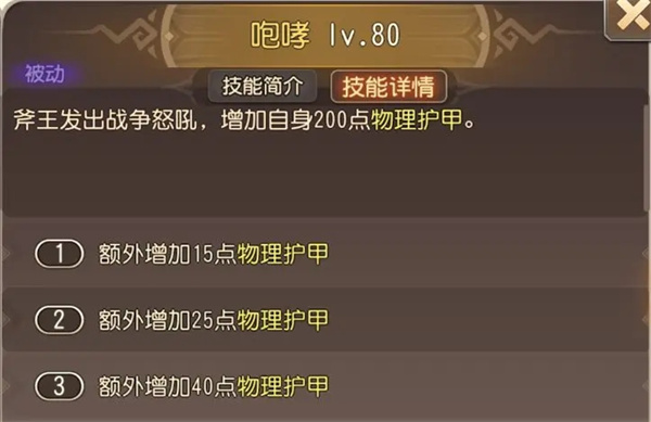 四技能——咆哮,不过多赘述了,增加物理护甲数值,加强身板的强度,给斧王打标签的技能,物理克星物理克星物理克星。纯数值数值技能,技能升级提升属性,技能顺位在第四位。