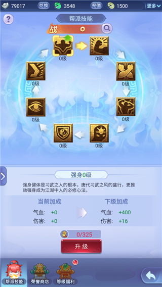 我们加入帮派后,就成为了帮派成员,可以学习各种各样的帮派技能,比如强身、巨力、铁骨等等。学习这些帮派技能后,可以强化人物战斗力了,不过学习帮派技能需要消耗帮贡。