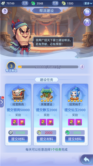 通过提供材料来对帮派进行贡献,可以获得帮贡和荣誉积分。