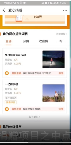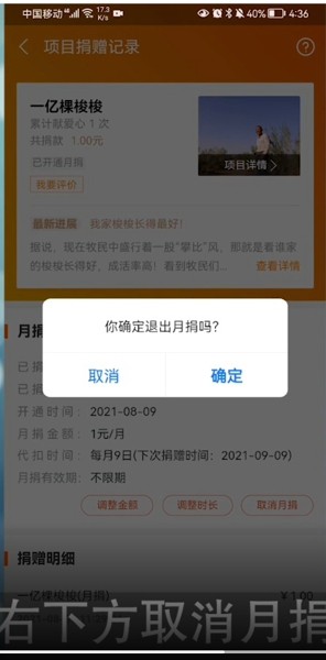 4、进入项目捐赠记录之中,点击右下方取消月捐即可。