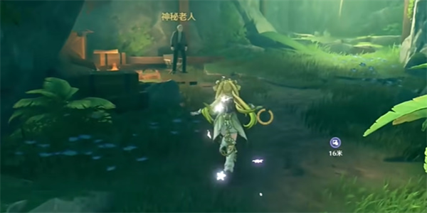 2、达到目的地后进入副本,能在前方看到一个神秘的老人,上前和老人进行对话。