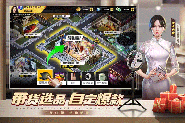 当直播间已经打造完善以后,就可以开拓其他的业务了,比如说将某位网红打造成游戏的主播,又或者是主打美妆的主播,甚至还可以朝演员的方向发展,这也增加了游戏的可玩性。