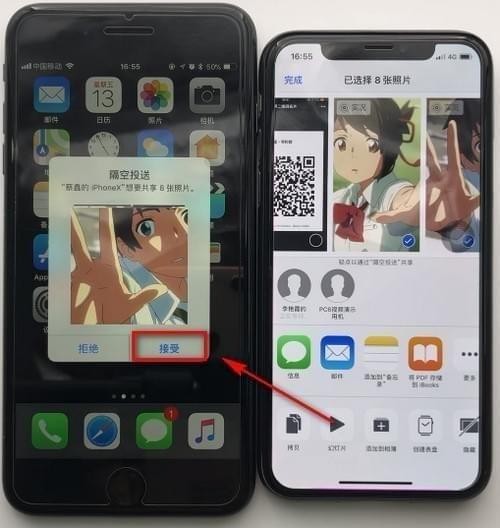 5.点击接收,就成功的把批量的照片传到另外一台手机了