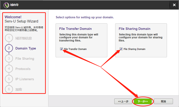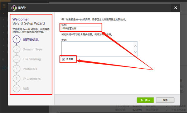 首先Serv-U会要求我们对自定义域的名称进行设置,这里填入我们喜欢的名字即可