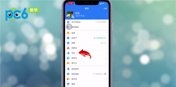 首先打开支付宝APP,点击【花呗】。