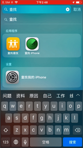 如果在主页找不到这一功能,在搜索页输入关键字,也可找到查找iPhone功能哦。