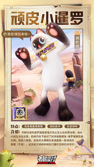 作为一只土生土长的岛喵,暹罗猫对喵沙岛的每一个地方都了如指掌,虽然有时候一根筋,但暹罗猫单纯的性格也为他带来了众多朋友。